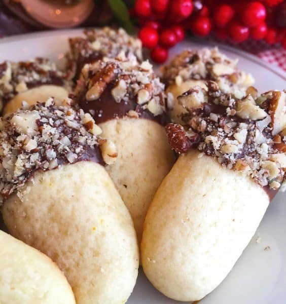 Chocolate Dipped Orange Logs - Yummy Chocolate Pecan Log Cookies